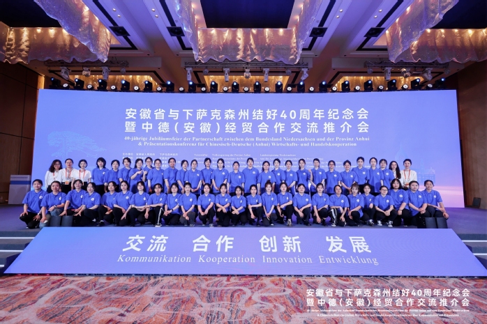 Am Nachmittag des 29. Mai wurden in Hefei die 40-j?hrige Jubil?umsfeier der Partnerschaft zwischen dem Bundesland Niedersachsen und der Provinz Anhui sowie Pr?sentationskonferenz für Chinesisch-Deutsche Wirtschafts- und Handelskooperation er?ffnet. Die Fakult?t für Fremdsprachen der Universit?t Hefei  organisierte mehr als 50 Lehrende und Studierende im Fach Germanistik, die bei dieser Veranstaltung ehrenamtliche Beratungs- und übersetzungsdienste leisteten.