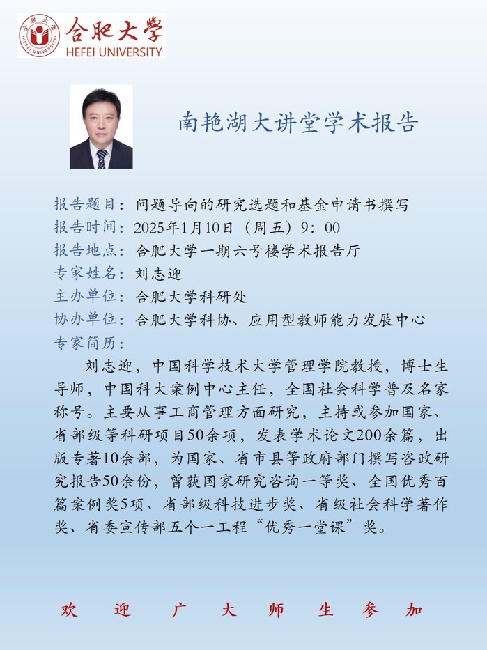 【南艷湖大講堂】問題導向的研究選題和基金申請書撰寫