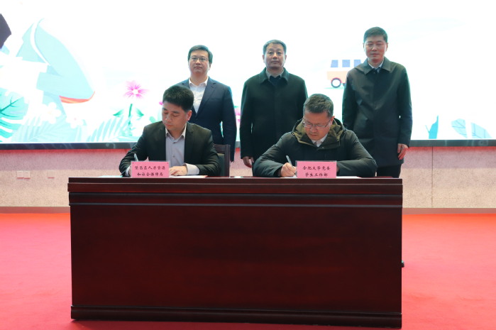 白義香對繁昌區(qū)來校開展招聘活動表示歡迎。他簡要介紹了學校的發(fā)展歷程及人才培養(yǎng)情況,希望校地深化合作,共謀發(fā)展。瞿輝詳細介紹了繁昌區(qū)經(jīng)濟社會發(fā)展情況和人才政策。繁昌區(qū)人社局與校學生處簽訂了推進人才培養(yǎng)與實習就業(yè)合作協(xié)議書。