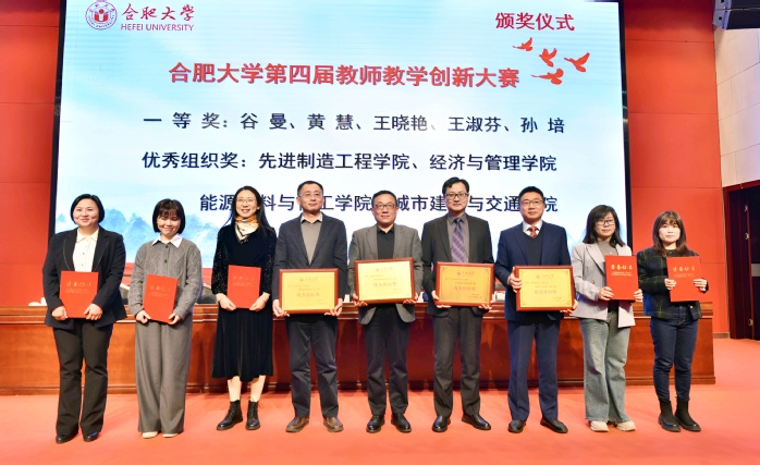 大會(huì)還舉行了頒獎(jiǎng)儀式。校領(lǐng)導(dǎo)為榮獲“第四屆教師教學(xué)創(chuàng)新大賽、第十四屆青年教師教學(xué)基本功大賽、2024屆本科畢業(yè)設(shè)計(jì)(論文)優(yōu)秀指導(dǎo)教師”一等獎(jiǎng)獲獎(jiǎng)教師和優(yōu)秀組織獎(jiǎng)教學(xué)單位頒發(fā)證書(shū)并合影留念。