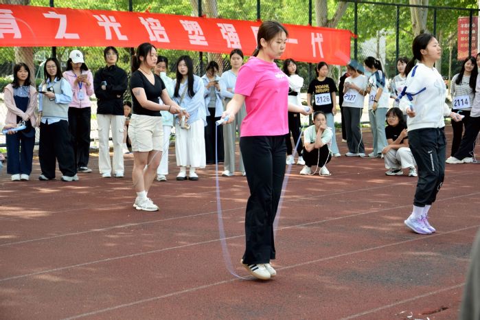 本屆體育節(jié)將體測項目與傳統(tǒng)體育賽事深度融合,構(gòu)建“基礎(chǔ)體能測試 + 特色項目競賽”的多元化評價體系。體測環(huán)節(jié)涵蓋50米跑、立定跳遠、引體向上(男)/仰臥起坐(女)等國家學(xué)生體質(zhì)健康標(biāo)準(zhǔn)項目,來自11個二級學(xué)院共711名同學(xué)參加。田徑場上,選手如離弦之箭,全力沖刺,肌肉緊繃,盡顯速度與激情;跳遠區(qū)域,選手們助跑、起跳、騰空,在空中劃出優(yōu)美弧線。最終,經(jīng)濟與管理學(xué)院、先進制造工程學(xué)院和語言文化與傳媒學(xué)院分獲體測運動會優(yōu)良率第一(66%)、第二(62%)和第三(54%),創(chuàng)造我校體測運動會以來最好成績。