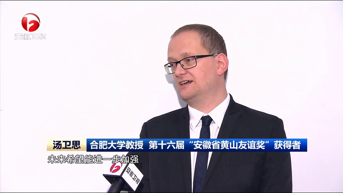 在合肥大學中德合作40周年之際,學校國際化師資隊伍建設再傳喜訊。5月12日,全省科技創新大會表彰了為我省經濟社會發展和促進國際交流合作作出突出貢獻的外國專家,德籍教授湯衛思(Claus Thomas Weise)榮獲第十六屆安徽省黃山友誼獎”。