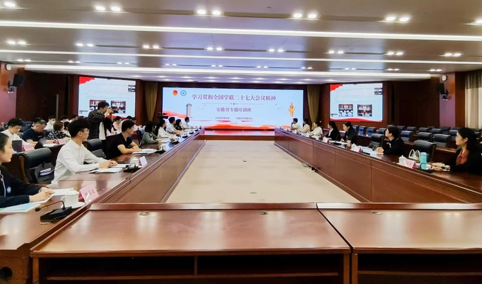 為深入學(xué)習(xí)貫徹習(xí)近平總書記賀信和黨中央致詞精神,全面貫徹落實(shí)全國學(xué)聯(lián)二十七大提出的工作部署和任務(wù),9月25日,團(tuán)省委、省學(xué)聯(lián)舉辦學(xué)習(xí)貫徹全國學(xué)聯(lián)二十七大會(huì)議精神安徽省專題培訓(xùn)班,我校團(tuán)委組織各學(xué)院師生團(tuán)干參與培訓(xùn)并座談交流。