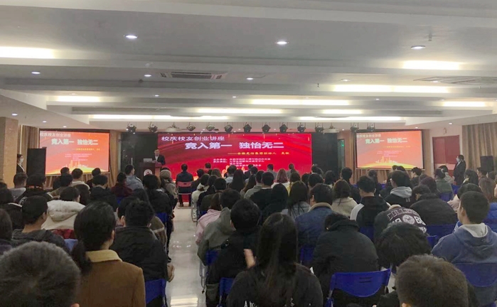 隨后,吳銳分享了創業經歷。創業之初困難重重,吳銳團隊摸爬滾打,適應變化,不斷革新,取得了突出的成績。在報告中他感恩母校老師的諄諄教誨,鼓勵學弟學妹們多學習,他指出,“學歷可以停止,學習不能停止,自律改變人生”,要做個有目標有夢想的年輕人,踏踏實實學習和做人,堅持夢想,做出一番事業。