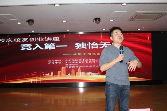 11月26日下午,由大學生創新創業教育中心、設計學院和共青團合肥學院委員會共同舉辦的校慶校友第三期創業講座在大學生活動中心舉行。2013屆優秀畢業校友吳銳做了題為《競入第一 獨怡無二》的創業報告。