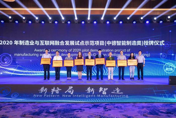 2021年1月27日,工業和信息化部正式公布了2020年制造業與互聯網融合發展試點示范名單。我校“中德‘雙元制’高等教育應用型人才培養基地建設及示范項目”入選試點示范項目(中德智能制造類)。在此次中德(臺州)智能制造大會上,工業和信息化部信息技術發展司副司長王建偉正式為中德智能制造類8個試點示范項目授牌。