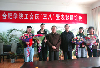 會議由院工會主席鮑安義主持。首先,鮑安義同志宣讀了院工會通報表彰去年榮獲第十一屆全國大學生擊劍錦標賽優秀教練員戴清、榮獲國家教育部全國高等教育學歷證書電子注冊管理工作先進個人黃雄英、榮獲安徽省教育工會女教職工工作先進個人閆繼紅、榮獲安徽省教育工會先進女教職工湯群等先進女教職工的決定。接著,獲獎代表湯群、閆繼紅進行了發言。院黨政領導趙良慶、劉立成為她們頒發榮譽證書,并向她們敬獻鮮花。
