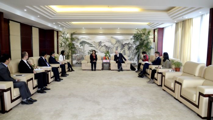 Zu Beginn des Treffens begrü?te Wu Chunmei die deutsche Seite herzlich und stellte kurz die Kooperationsprojekte und Entwicklung zwischen der Universit?t Hefei und den deutschen Hochschulen vor.Sie wies darauf hin, dass die Universit?t Hefei eine lange Tradition in der Zusammenarbeit mit deutschen Universit?ten habe: Die chinesisch-deutsche Zusammenarbeit habe sich von offline zu online, von einseitig zu zweiseitig entwickelt und einen einzigartigen Weg in der F?rderung angewandter Talente eingeschlagen.Sie sagte, dass die Universit?t Hefei weiterhin vom deutschen Modell der Talentf?rderung des dualen Systems lernen und die aktuelle Situation zu einer guten Plattform für Studentenausbildung, Lehreraustausch und Zusammenarbeit zwischen der Universit?t und den Unternehmen kombinieren werde.