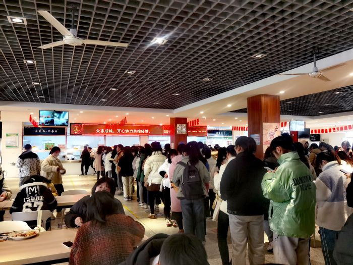 圖書館、教室、食堂、體育館為學生返校做了周密準備,全面清潔消殺,維護基礎設施。19日中午學生食堂準時開伙,煥然一新的菜單欄、精心準備的飯菜、“有序排隊,間隔一米”的地面標識、“一粒米,禾滴汗,粒粒糧食汗珠換”“文明用餐,節儉惜福”的宣傳海報……讓大家耳目一新。在香怡、桂苑、蘭苑宿舍樓里,宿管阿姨們熱情迎接返校學生進入宿舍,一聲聲悉心問候、一個個嶄新標識,處處歡迎著合院學子們“回家”。