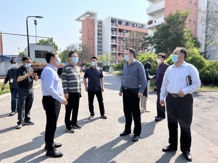 4月11日下午,經(jīng)開(kāi)區(qū)黨工委委員、管委會(huì)副主任王家和來(lái)校督查疫情防控工作,校黨委副書記劉建中和辦公室、學(xué)生處、保衛(wèi)處、公管處、后勤集團(tuán)負(fù)責(zé)人陪同。