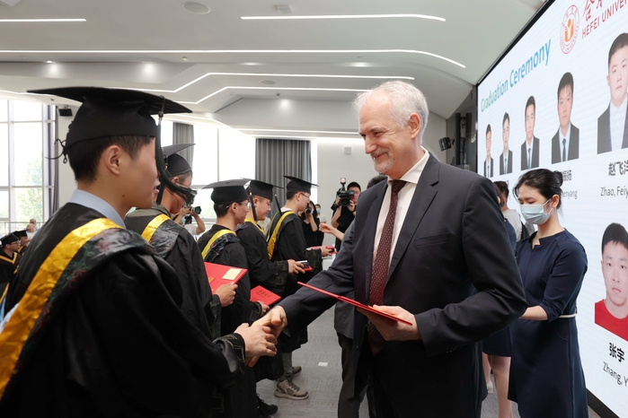 Am 16. Juni schloss die erste Gruppe der von der Universit?t Hefei in Zusammenarbeit mit dem Volkswagen Konzern ausgebildeten ?Nachwuchsingenieure“ ihre Ausbildung erfolgreich ab. Die Pr?sidentin der Universit?t Hefei Wu Chunmei nahm an der von Volkswagen Anhui veranstalteten Abschlussfeier teil. Herr Jens Pfitzinger, stellvertretender Vizedirektor des Volkswagen Konzerns (China), Dr. Gabardi, Chief Executive Officer bei Volkswagen (Anhui), Herr Schneider, Chief Manufacturing Officer, Dr. Ludger Lührmann, Chief Technical Officer, Herr Jian Shao, Chief Human Resources Officer sowie Führungskr?fte und Lehrkr?fte aus dem Büro des Pr?sidenten, dem Büro für akademische Angelegenheiten, dem Büro für internationalen Austausch und Zusammenarbeit, demInstitut of Advanced Manufacturing Engineering und dem Institut of Artificial Intelligence and Big Data nahmen an der Abschlussfeier teil.