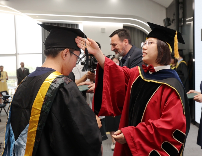 Nach der Zeremonie machte Wu Chunmei ein Gruppenfoto mit den Studierenden.