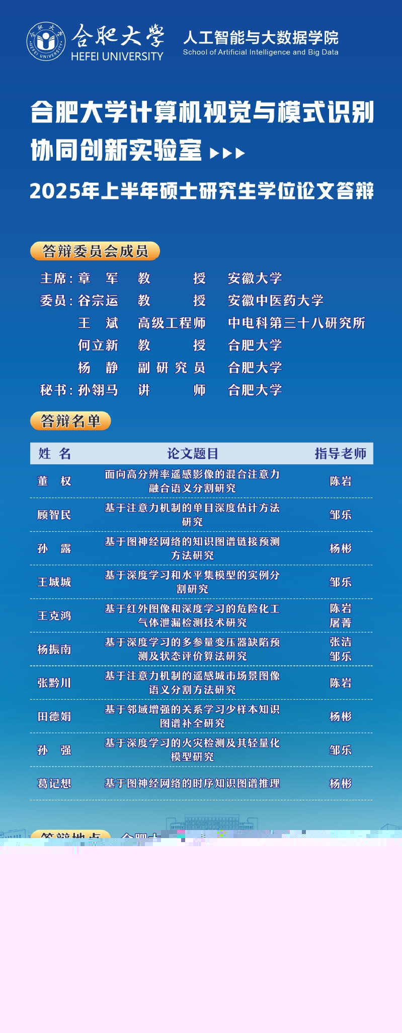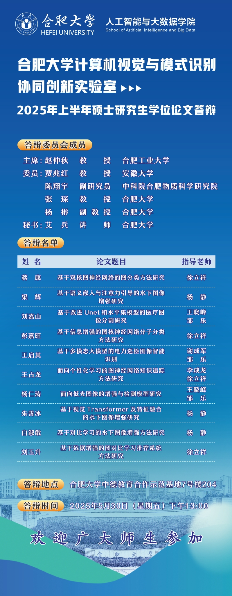 實驗室2025年上半年碩士研究生學位論文答辯預告