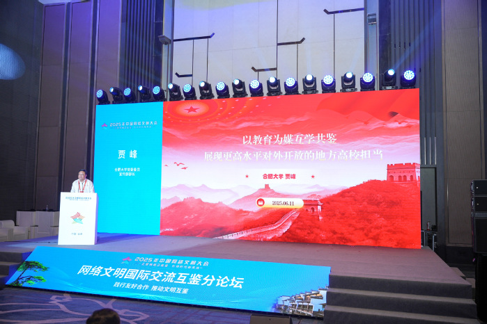 6月11日,2025年中國網絡文明大會網絡文明國際交流互鑒分論壇在合肥舉行。校黨委委員、黨委宣傳部部長賈峰作為嘉賓與中外專家學者一起,探討“踐行友好合作推動文明互鑒”議題,分享如何以教育為媒互學共鑒,展現更高水平對外開放的地方高校擔當。