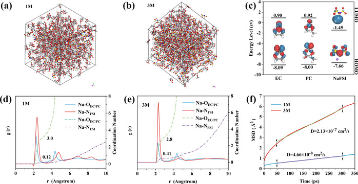 團隊深入研究了高濃度電解液對鈉離子溶劑化結構以及正極-電解液界面(CEI)形成的重要影響,顯著提升了鈉離子傳輸動力學。相關成果以“A comprehensive investigation of solvation structure and cathode-electrolytes interface for sodium-sulfur batteries in high-concentration electrolytes”為題發表在《Journal of Colloid and Interface Science》上。團隊胡磊為通訊作者,合肥大學能源材料與化工學院為第一完成單位。