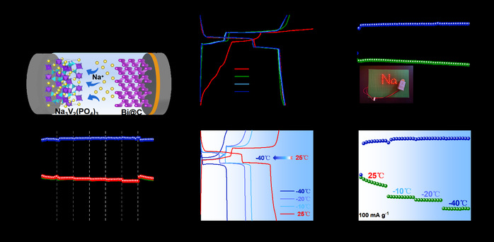 團隊通過鈉離子電池負極材料Bi@C的結構設計及其匹配電解液的機理研究,使鈉離子全電池Bi@C//NVP在低至-40℃溫度下也能表現出優異穩定的充放電性能,并深入研究了其高性能低溫儲鈉機制,為推動鈉離子電池的發展奠定了良好的基礎。該成果以“Bi@C nanosphere anode with Na+-ether-solvent cointercalation behavior to achieve fast sodium storage under extreme low temperatures”為題,發表于《Carbon Energy》。團隊劉伶俐為通訊作者,梁鑫為通訊作者,合肥大學能源材料與化工學院為第一完成單位。