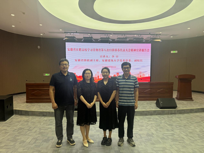 為深入學習貫徹安徽省第八次歸僑僑眷代表大會精神,進一步凝聚僑心、匯聚僑智、發揮僑力,7月31日上午,安徽省僑聯在合肥組織召開安徽省在肥高校學習貫徹省第八次歸僑僑眷代表大會精神宣講報告會。本次報告會由安徽省僑聯副主席、安徽建筑大學黨委常委、副校長李早宣講。合肥大學僑聯積極響應,組織省僑聯委員、校僑聯主席趙歡,校僑聯副主席楊承剛,校僑聯秘書長張星,僑聯會員代表李殿云等參加會議。