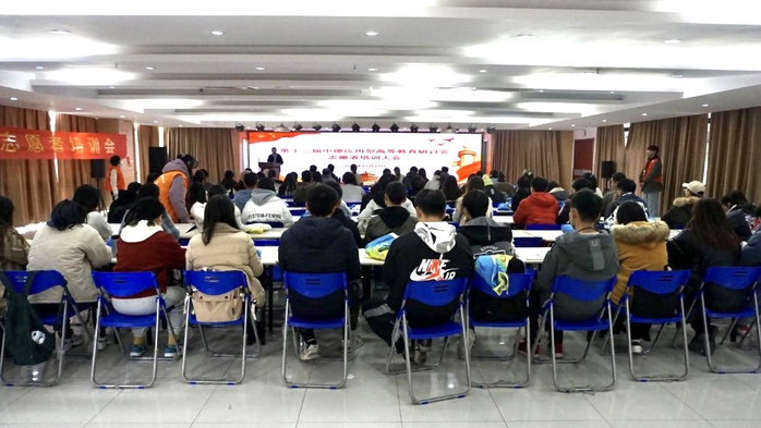 11月27日中午,第十三屆中德應用型高等教育研討會志愿者培訓大會在大學生活動室舉行。校團委杜娟書記、中德應用型高校教師能力發展中心副主任陶龍澤及兩百余名志愿者參會。會議由校青志聯主席汪朋主持。