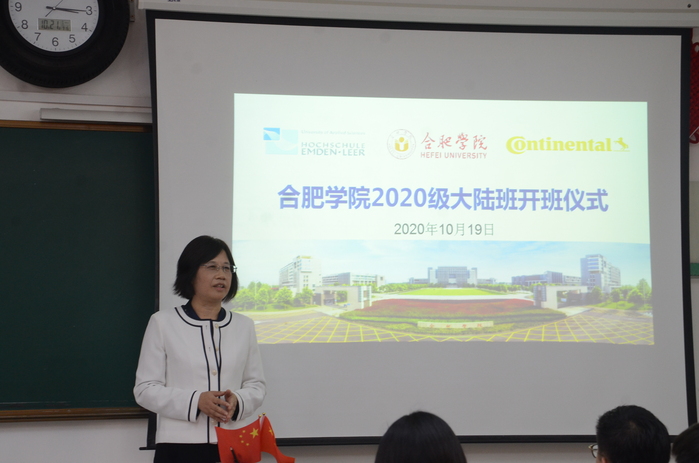 Wu Chunmei überreichte vier G?sten von Continental Tire (China) Co., Ltd. das Ernennungsschreiben zu Gastprofessoren der Universit?t Hefei und dankte den vier Gastprofessoren für ihre Beitr?ge zur Reform der Conti-Klasse mit dem dualen System und sogar zur anwendungsorientierten Hochschulbildung. Sie stellte die Entwicklungsgeschichte der Modelleinrichtung der Bildungskooperation zwischen China und Deutschland vor und sagte: ?Die Conti-Klasse hat ein neues Modell für die Fachkr?fteausbildung geschaffen und ist ein sehr gutes Modell für Bildungsinnovationen. Es wurde auch von den Leitern beider Seiten anerkannt. Ich hoffe, dass die Studierenden die Gelegenheit sch?tzen, den Ausbildungsmodus der Conti-Klasse zu verstehen, und flei?ig lernen.“