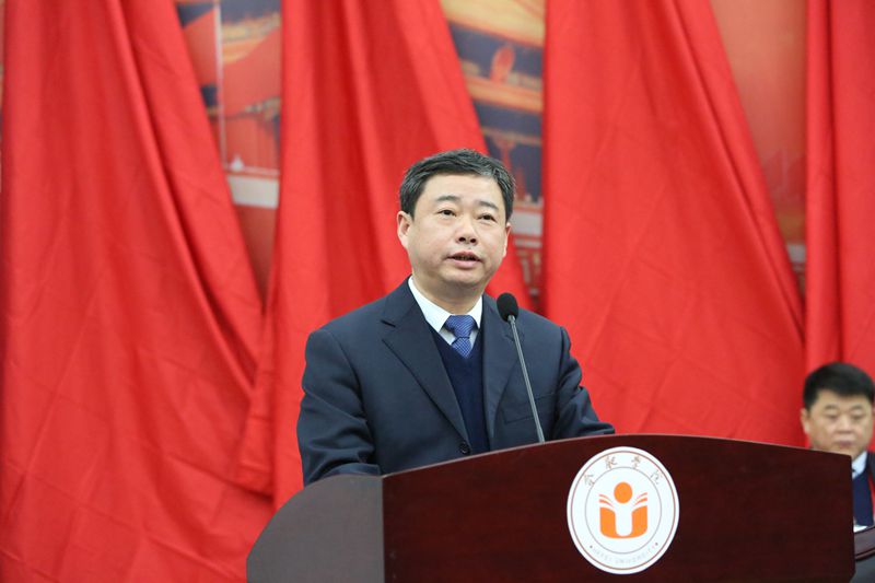 合肥學院工會主席崔國慶代表校群團組織致辭,省政協委員、民革合肥市委副主委、藝術設計系主任謝海濤代表民主黨派和無黨派知識分子聯誼會致辭。