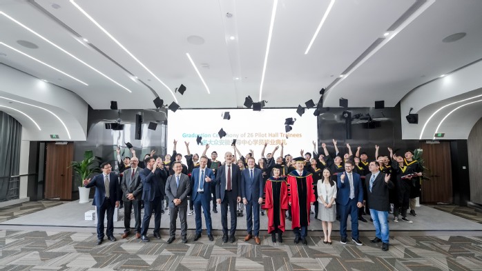 6月16日上午,我校和大眾集團合作培養的首批“種子工程師”順利畢業,校長吳春梅出席大眾安徽舉行的畢業典禮。大眾中國執行副總裁傅勤彥先生、大眾安徽首席執行官葛皖鏑博士、首席制造官施耐德先生、首席技術官呂爾曼博士、首席人力資源官邵劍先生以及校長辦公室、教務處、國際交流合作處、先進制造工程學院、人工智能與大數據學院相關領導和老師共同參加畢業典禮。