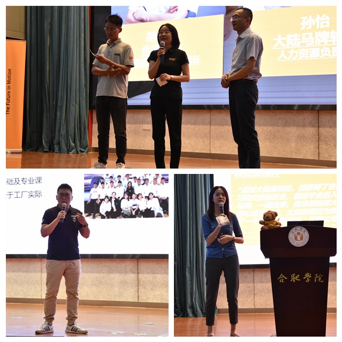 首先,大陸馬牌輪胎(中國)有限公司招聘與雇主品牌經(jīng)理李媛媛介紹了大陸集團及大陸馬牌輪胎公司的組織架構(gòu)、前沿技術(shù)、品牌定位,詳細講述了大陸馬牌輪胎合肥工廠的概況、發(fā)展歷程和市場規(guī)模。大陸班負責人張光洲從班級的基本概況、班級辦學特色、大陸班的發(fā)展機遇與挑戰(zhàn)、課程設(shè)置、學費標準等方面為現(xiàn)場同學詳細介紹了項目情況。在答疑互動環(huán)節(jié),先進制造工程學院院長胡學友、大陸馬牌輪胎(合肥)有限公司人力資源總監(jiān)孫怡講解了大陸班選拔流程,優(yōu)秀畢業(yè)生代表暢談在大陸班的成長故事,鼓勵新生積極參與項目報名。