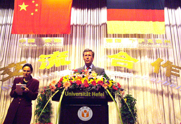 2007年,在時任下薩克森州州長武爾夫和安徽省人民政府的支持下,學校成立了“中國安徽——德國中心”,現(xiàn)已成為安徽省開展對德及對歐交流合作的重要平臺;2009年,合肥市人事局海外人才辦事處在學校掛牌,通過整合引智資源,加強與國外高校和企業(yè)間多層次、多領域合作交流,合肥學院為安徽省與德國的友好合作提供了廣闊平臺。