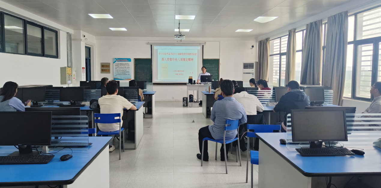 為深入學習領會習近平總書記關于加強黨的作風建設的重要論述,學習領會和貫徹落實中央八項規定及其實施細則精神,人工智能與大數據學院教工第一黨支部組織全體黨員教師于2025年4月22日下午在36棟501開展深入貫徹中央八項規定精神學習教育。