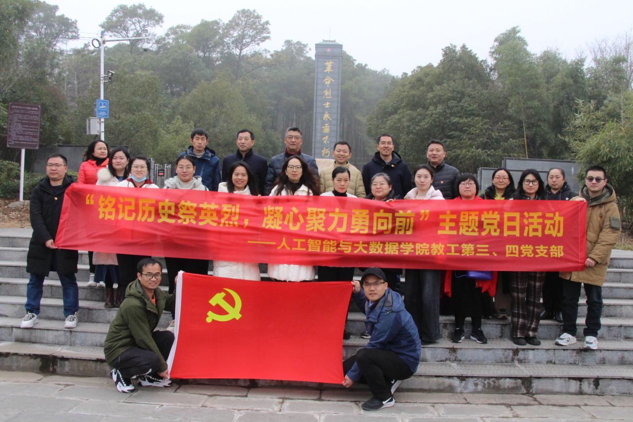 2023年12月29日,在2023年的最后一個工作日,人工智能與大數據學院教工第三、四黨支部聯合開展了“銘記歷史祭先烈 凝心聚力勇向前”主題黨日活動。人工智能與大數據學院黨委委員、副院長許強應邀出席活動,黨委副書記姚蓓蓓以普通黨員身份參與活動,另有支部黨員30余人參加活動。