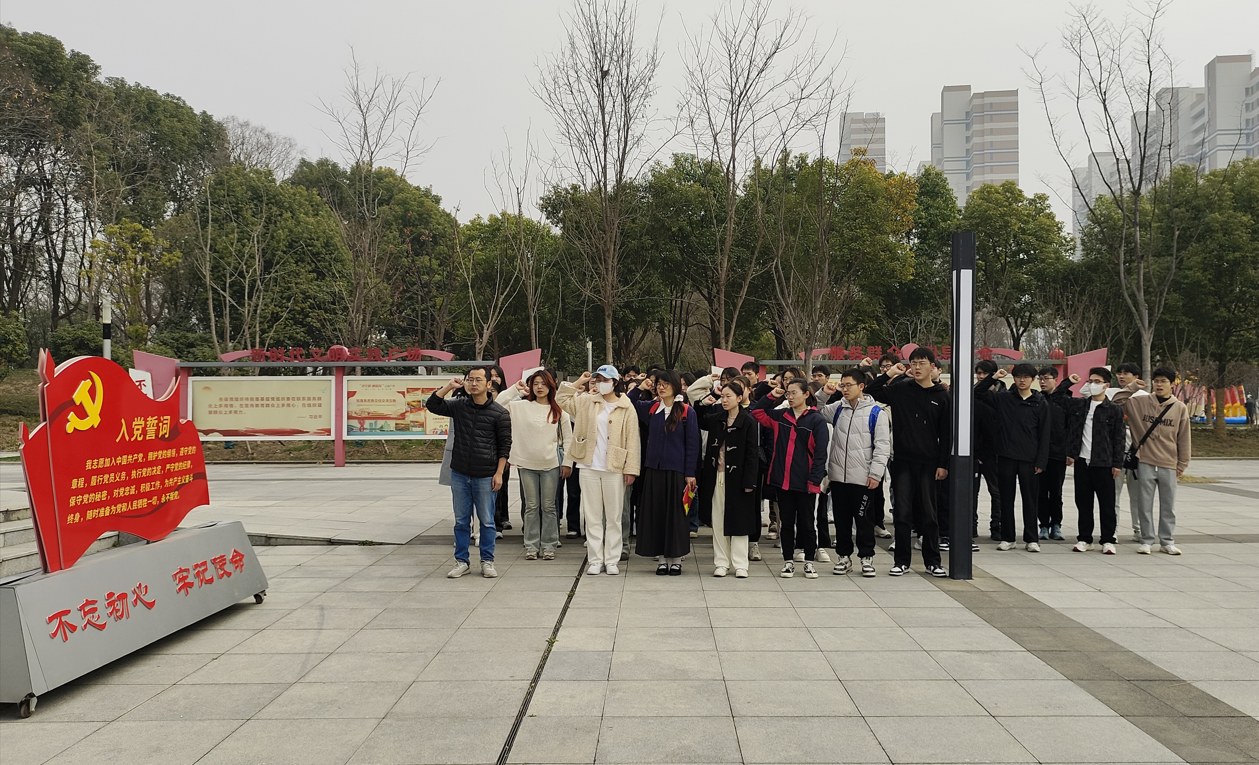 參觀結束后,全體成員在烈士紀念碑前莊嚴宣誓,表達了對英烈的崇高敬意和繼承遺志、勇擔時代使命的堅定決心。隨后,學生第一黨支部書記汪劍老師發表了激情澎湃的講話,強調了新時代青年要繼承和發揚革命先烈的偉大精神,以實際行動踐行社會主義核心價值觀,努力成為擔當民族復興大任的時代新人。
