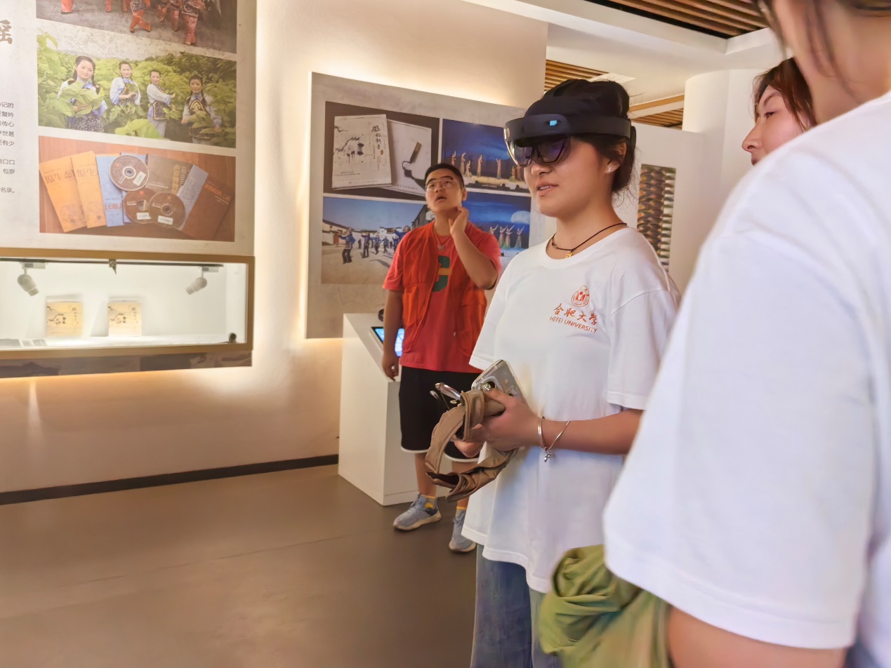 最讓志愿者們興奮的是VR眼鏡體驗環節。帶上VR眼鏡,他們仿佛穿越時空,置身一個充滿徽州古建筑和傳統技藝的虛擬世界。在VR場景中,志愿者們親身參與了徽派建筑的搭建過程,體驗了徽墨制作的精細工藝,感受到了非遺文化的魅力和科技的力量。此次體驗讓志愿者們深刻認識到科技與傳統文化的結合,不僅為非遺文化的傳播提供了新的途徑,也為傳統文化的保護與傳承注入了新的活力。