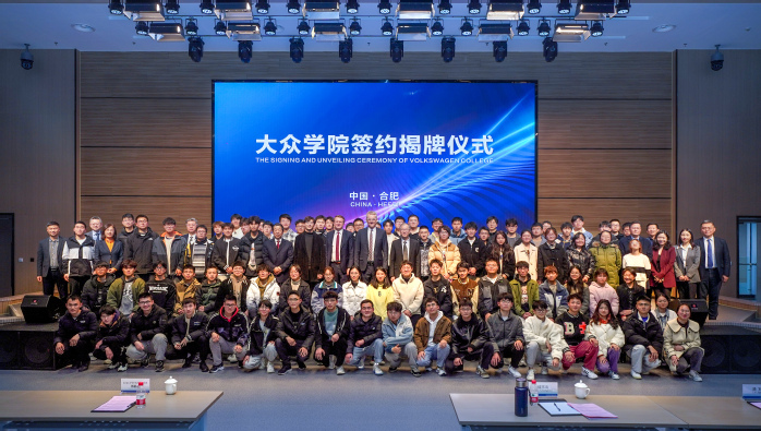 為推動產(chǎn)教深度融合、校企協(xié)同育人,打造“雙元制”高等教育合作范例,2月20日,大眾學院簽約揭牌儀式在合肥市中德合作創(chuàng)新園隆重舉辦。大眾汽車集團(中國)執(zhí)行副總裁傅勤彥(Jens Pfitzinger),大眾汽車(安徽)有限公司首席執(zhí)行官葛皖鏑(Erwin Gabardi),合肥學院黨委書記王其東,合肥市委常委路軍,省委教育工委委員、省教育廳副廳長儲常連出席儀式并致辭。儀式由合肥學院院長吳春梅主持。
