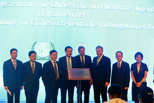 Herr Pr?sident Christian Wulff weihte das ?Existenzgründungszentrum für chinesische und deutsche Jugendliche“ im Rahmen der Modelleinrichtung für die Bildungskooperation ein. Er war auch Zeuge der Unterzeichnung einer strategischen Kooperationsvereinbarung von Prof. Dr. Cai Jingmin und GASME-Generalsekret?r Cao Fang. Er bezeugte au?erdem die Unterzeichnung eines gemeinsamen Abkommens mit dem Europabüro, das von Cao Fang und Michael Pietz, Exekutivvorsitzender des GASME DACH, unterschrieben wurde. Daran nahmen auch Shen Xin, Leiter der Abteilung für europ?ische und asiatische Angelegenheiten von CPAFFC, Li Heping, Bildungsminister der Provinz Anhui, und Zhang Lifang, Vizedirektorin des Büros für ausw?rtige Angelegenheiten der Provinz Anhui, teil.