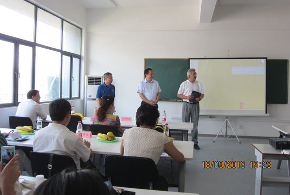 2013年9月,他再次來到合肥學院執(zhí)教,在當年的安徽建筑節(jié)能技術(shù)平臺研討會上,賴默教授和他的德國助手介紹了德國建筑節(jié)能技術(shù)設(shè)計軟件,演示了常用建筑材料節(jié)能性能的檢測試驗,并分享了他主持的“中國安徽—德國下州‘創(chuàng)新展亭’”項目。該項目是賴默教授從2008年開始謀劃,到建成歷時兩年多時間。這是一棟集多種建筑節(jié)能技術(shù)和新型建筑節(jié)能材料于一體的,開展建筑節(jié)能工程應用實驗研究的建筑物,曾作為2010年上海世博會德國園外項目參展。項目展示了當前建筑節(jié)能工程領(lǐng)域新型保溫墻體系統(tǒng)、地源熱泵技術(shù)和通風系統(tǒng)、吊頂輻射制冷技術(shù)、采暖玻璃等新型低能耗建筑形式和技術(shù),為深入地了解建筑節(jié)能技術(shù)工程應用水平,學習和發(fā)展建筑節(jié)能先進技術(shù)工程應用提供了一個可借鑒的范例。