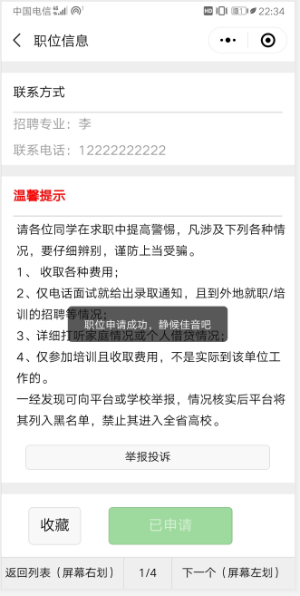 第一步、畢業生登錄小程序并完成簡歷投遞