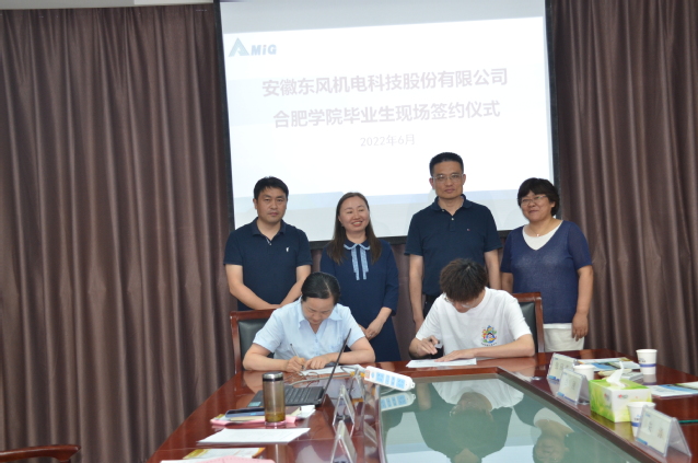 王其東一行與企業代表密切交流后,就建立長期合作關系、共同培養人才等方面達成一致意見,簽署院企就業合作協議并授予“合肥學院先進制造工程學院大學生就業基地”牌匾。