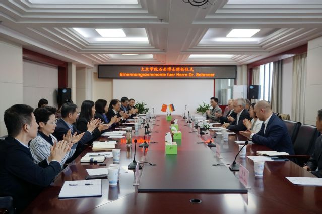 Am Morgen vom 8. Oktober hielt die Hefei-Universit?t die Ernennungszeremonie für Sonderprofessoren ab und stellte Dr. Klaus Schr?er, ehemaligen Vorstand und Ingenieur des Volkswagen Konzerns, als Sonderprofessor im Volkswagen-Institut auf Vollzeitbasis ein. An der Zeremonie nahmen Pr?sidentin Wu Chunmei, Direktor der Abteilung für Organisation Bai Yixiang, Direktor der Abteilung für Studentenangelegenheiten und Dekan des Volkswagen-Instituts Wang Xiaofeng, Direktor der Personalabteilung Ji Ping, Direktor der Abteilung für internationalen Austausch und Zusammenarbeit Zhang Hui, Parteisekret?r des Volkswagen-Instituts Xuan Yuewen, Dekan des Instituts für fortgeschrittene Fertigungstechnik Hu Xueyou und die zust?ndigen Lehrkr?fte teil. Dr. Harry Schneider, Chief Manufacturing Officer von Volkswagen Anhui, Zhu Jiangping, Director of Efficiency Management von Volkswagen Anhui, und Hendrik Dippe, Director of Maintenance Department von Volkswagen Anhui, waren zur Teilnahme an der Zeremonie eingeladen. Die Zeremonie wurde von Vizepr?sidentin Chen Xiu geleitet.