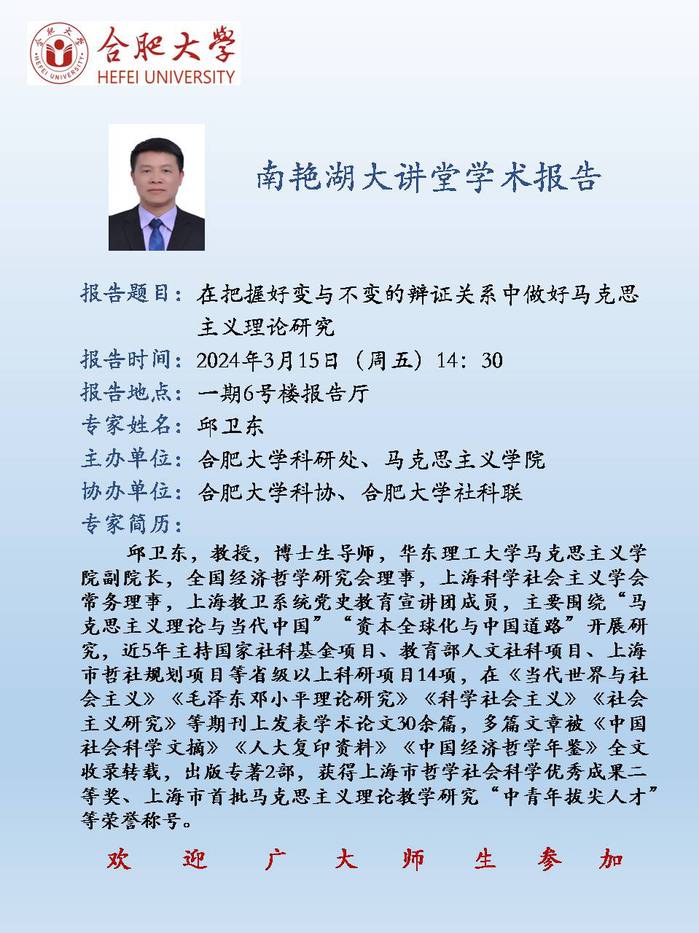 【南艷湖大講堂】在把握好變與不變的辯證關系中做好馬克思主義理論研究