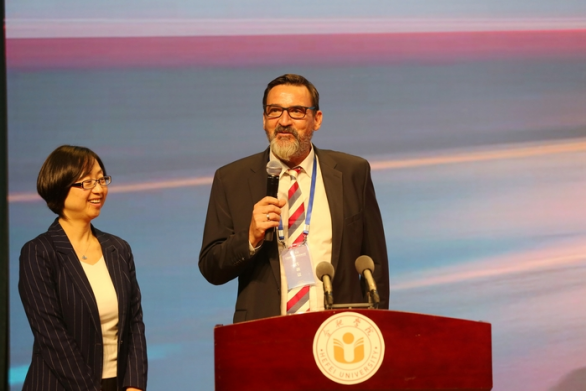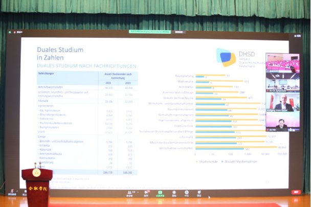 Professor Wolfgang Ahrens Fischer, Dean of School of Dual Education of Osnabrück University of Applied Sciences, makes a report, introducing the development and current situation of the dual-system higher education.