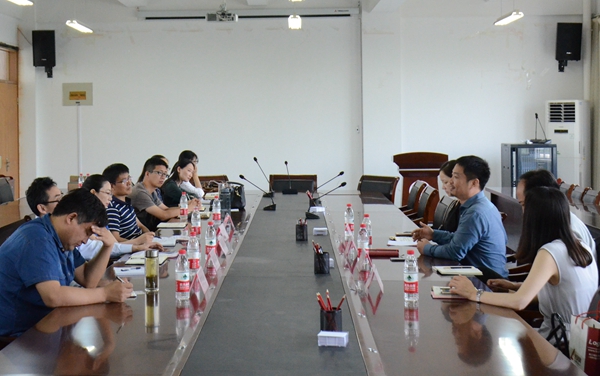 On June 7, Chair of the University Council, Cai Jingmin, welcomed Shao Qingdong, Chair of Beijing Logis Sci Tech Development Co., Ltd., and his group members. Shao and Cai had a talk over the project of co-building a logistics lab in Management Department, HFU. The staff concerned participated in the discussion.