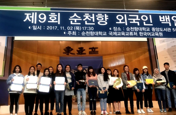 Two students from HFU, Liang Shuangning and Zhu Peiling win the first and second prize respectively in the Korean Writing Contest(for overseas students) and the GBS Business Speaking Contest held in Soon Chun Hyang University(Korea, November, 2017).