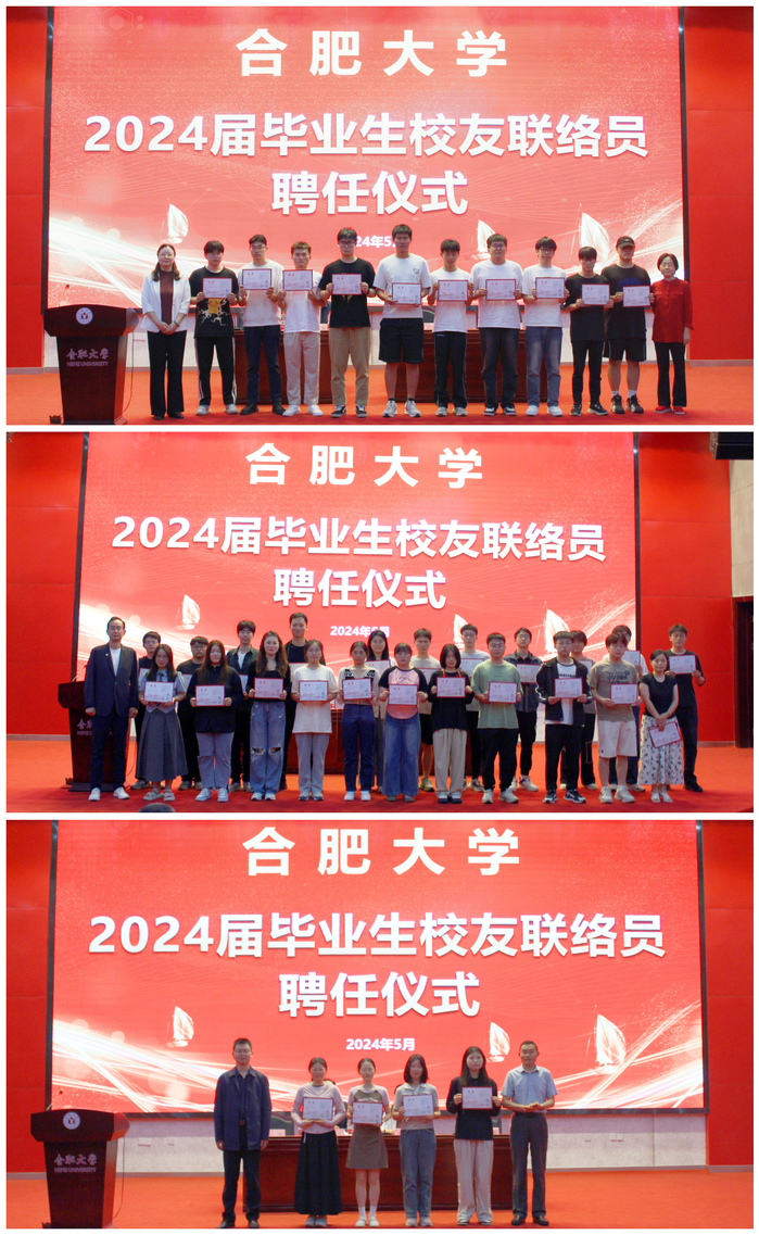 5月31日下午,2024屆畢業生校友聯絡員聘任儀式在圖書館學術報告廳A廳舉行。校友辦、學生處、各二級學院黨委書記和副書記、2024屆畢業生校友聯絡員參加儀式。