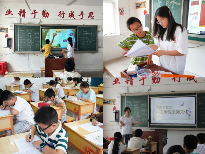 語言文化與傳媒學(xué)院暑期“三下鄉(xiāng)”實(shí)踐團(tuán)隊(duì)志愿者們組建“愛灑鄉(xiāng)村 教育同行”教學(xué)團(tuán)隊(duì)。教學(xué)團(tuán)隊(duì)分為書畫組、英語組、國學(xué)組和歌舞組。教學(xué)內(nèi)容以傳統(tǒng)文化為主,教學(xué)時(shí)間從7月6號持續(xù)到7月13號。