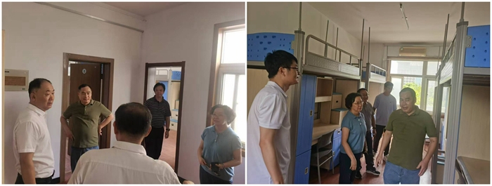 8月28日,國有資產管理處處長張惠,校園建設與管理處處長吳世勇、副處長夏光峰,后勤集團總經理葉道全一行在施工單位、監理單位工作人員的陪同下檢查了暑假期間學生宿舍維修改造、設施配備及開學準備情況。
