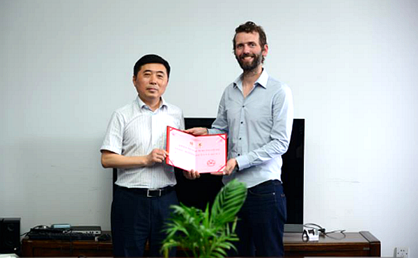 Am 8.6.2018 erhielt der deutsche Designer Herr Christoph Wiehle seine Berufung als Gastprofessor an der Universit?t Hefei. Herr Prof. Xie Haitao, Dekan der Fakult?t für Kunst und Design, verlieh ihm die Ernennungsurkunde. Anwesend bei der Zeremonie waren auch der deutsche Professor an unserer Universit?t Herr Olaf Rack und einige Dozenten und Studierende.