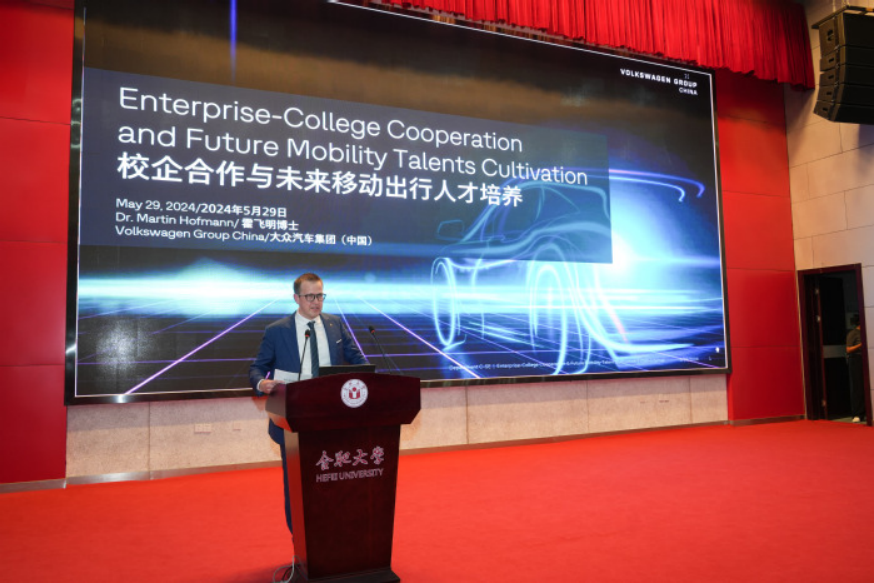 Martin Hoffmann, Executive Vice President der Volkswagen Group (China), sprach über ?Enterprice-College Cooperation and Future Mobility Talents Cultivation“.