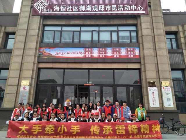 正值3·5雷鋒月,3月16日下午,合肥學(xué)院管理系青年志愿者服務(wù)團(tuán)實(shí)踐部委員攜15名志愿者合肥46中七(22)班20名志愿者,由管理系團(tuán)總支副書(shū)記姚璇老師帶隊(duì)共同前往海恒社區(qū)開(kāi)展“看望孤寡老人”和“少先隊(duì)員學(xué)雷鋒”等雷鋒月系列活動(dòng)。