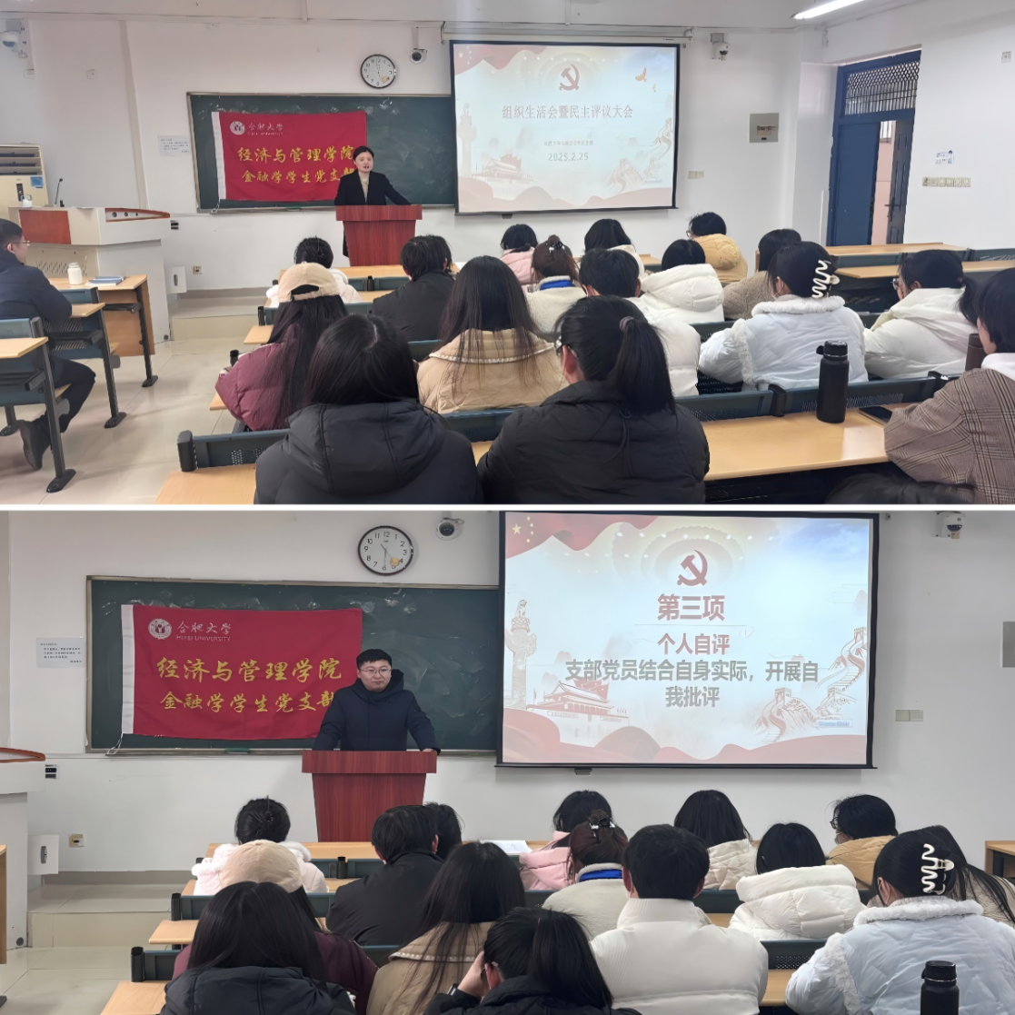 225日,經濟與管理學院金融學學生黨支部在4301教室召開2024年度組織生活會暨民主評議黨員會議。金融學學生支部黨員全員參會,學院黨委副書記夏丹青到會指導。