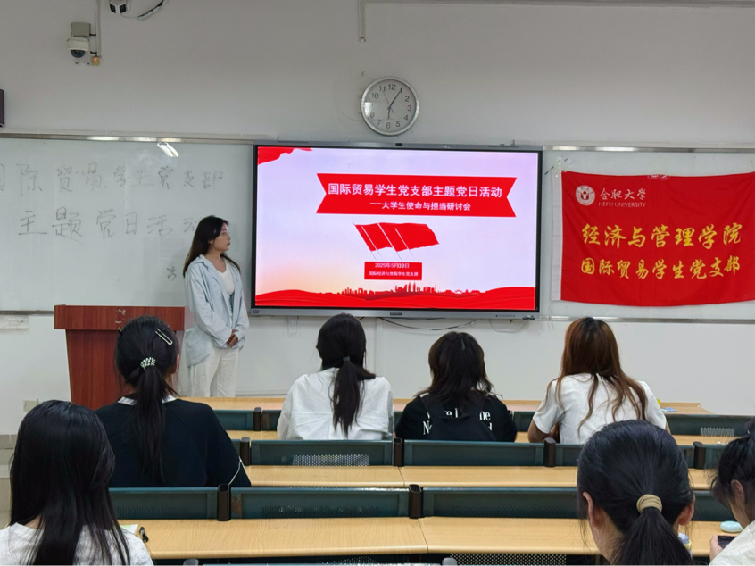 5月9日,國際貿易學生黨支部順利開展“當代大學生的使命與擔當”主題黨日活動。第十二期入黨積極分子參會,圍繞新時代青年使命展開深入學習與熱烈討論。
