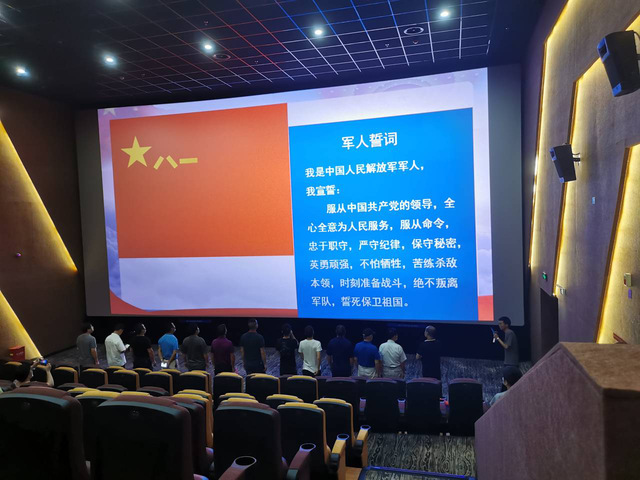 一大早,隊(duì)員戴文清就和工作人員來到簽到處為退伍軍人簽到并發(fā)放電影票,確保退伍軍人及軍人家屬有序入場(chǎng)。活動(dòng)伊始,全體起立高聲奏唱《中華人民共和國(guó)國(guó)歌》。緊接著,退伍軍人們重溫起軍人誓詞,“我是中國(guó)人民解放軍軍人,我宣誓服從中國(guó)共產(chǎn)黨的領(lǐng)導(dǎo)……”,一字字鏗鏘有力,一句句擲地有聲。在為退役軍人送上慰問品、奏唱《中國(guó)人民解放軍進(jìn)行曲》、聽取退伍軍人建議后,退伍軍人們集體觀看電影《戰(zhàn)狼2》。緊湊的劇情、敬業(yè)的演員和影片中折射出的國(guó)家榮譽(yù)感令人震撼,從頭到尾不停歇、流暢連貫的打斗場(chǎng)面令人血脈噴張,雷厲風(fēng)行英勇無畏的軍人風(fēng)格和負(fù)責(zé)任的大國(guó)擔(dān)當(dāng)令人熱淚盈眶。“老兵,是最值得尊敬的。在有任何危險(xiǎn)發(fā)生的時(shí)候,他們會(huì)立刻因?yàn)檐娙说穆氊?zé)而沖在最前面。所以《戰(zhàn)狼2》也在向他們致敬。”,導(dǎo)演兼主演吳京在一次訪談中如是說道。